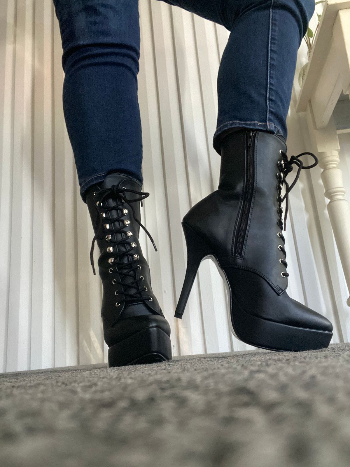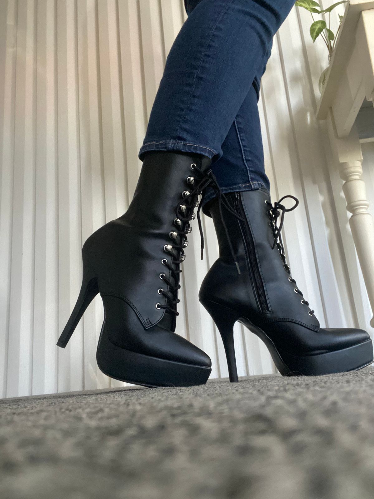 Simple and sexy, this lace-up black ankle boot with its platform and high heel is perfect for costume events, work, parties, and everything in between! Featuring a side zip for easy wear, styling this sexy boot is easy!